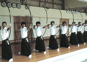 | 弓道は、心、技、体その全てに高度な鍛錬が要求される日本独自の優れて伝統的なスポーツであり、その魅力が時代を越えて多くの人々の心をとらえてきたことは多言を要しません。単にスポーツと呼ぶには余りにも奥の深い弓道。そうした弓道に最も相応しい修行の場として洗心弓道場が建てられてから既三十年余。広く知られるごとく幾多の練達の士がこの道場から輩出いたしました。 この伝統を受け継ぎ、帝産ロッヂに建てられた洗心弓道場は、十六間と十間の道場を館内に併設。敷地内には十間の独立した道場もあり、合計三道場を擁しています。道場内は床暖房などを採用、四季を問わず快適に合宿いただけます。 薪藁道場、コインランドリーなどの施設も整っております。洗心弓道場は文字通り心洗われる鍛成の場、心のある方々の御利用をお待ち申し上げております。 |